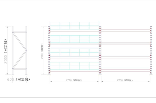 1.以标准型中型货架的长宽高为常规型货架、尺寸为(L2000*W600*H2000),适用面广、安装拆卸方便、50mm节距调节、承载在100㎏~350㎏;