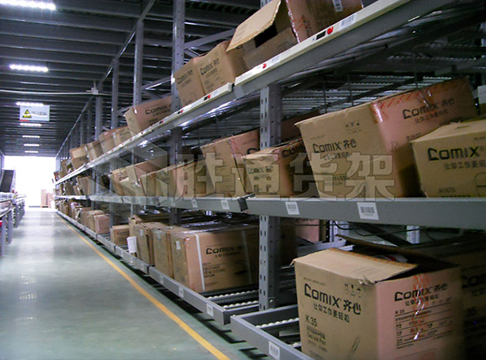 流利式货架是仓库储藏中最常用的一种货架。流利式货架通常采用滚轮式铝合金等流力条,利用货物自重实现货的先进先出。流利式货架具有存取方便,空间利用率较高,配以电子标签时易实现货物的信息化管理等特点,适用于大批量同类货物的存储,也适合于装配线两侧,配送中心等场所。